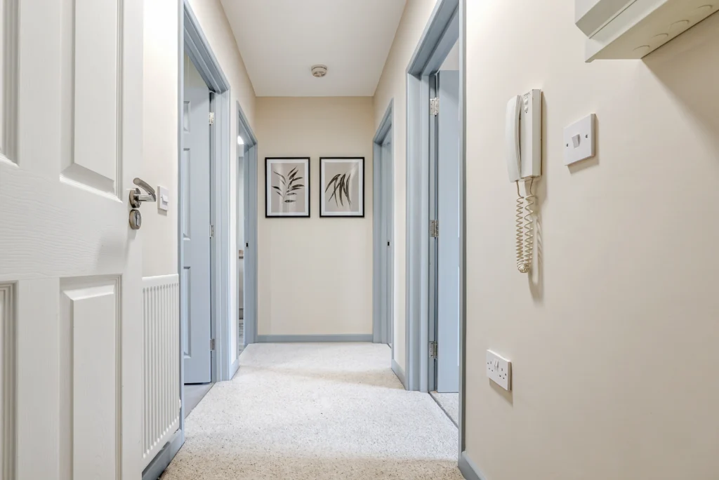 The home has six self-contained apartments across three floors, which can be accessed via an internal staircase or by lift access. Each apartment is private, with its front door separated on either side of the building.